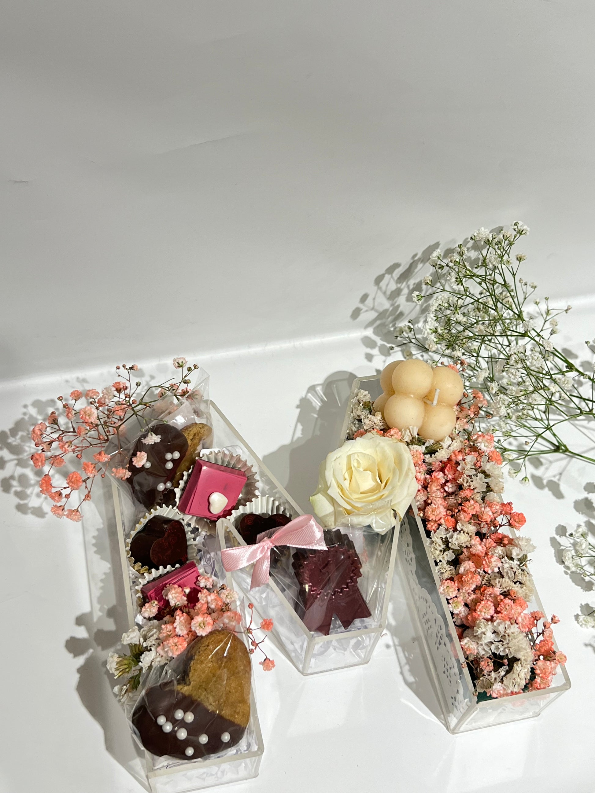 2 chocolate love tokens ( center filled noir ganache/ salted caramel)